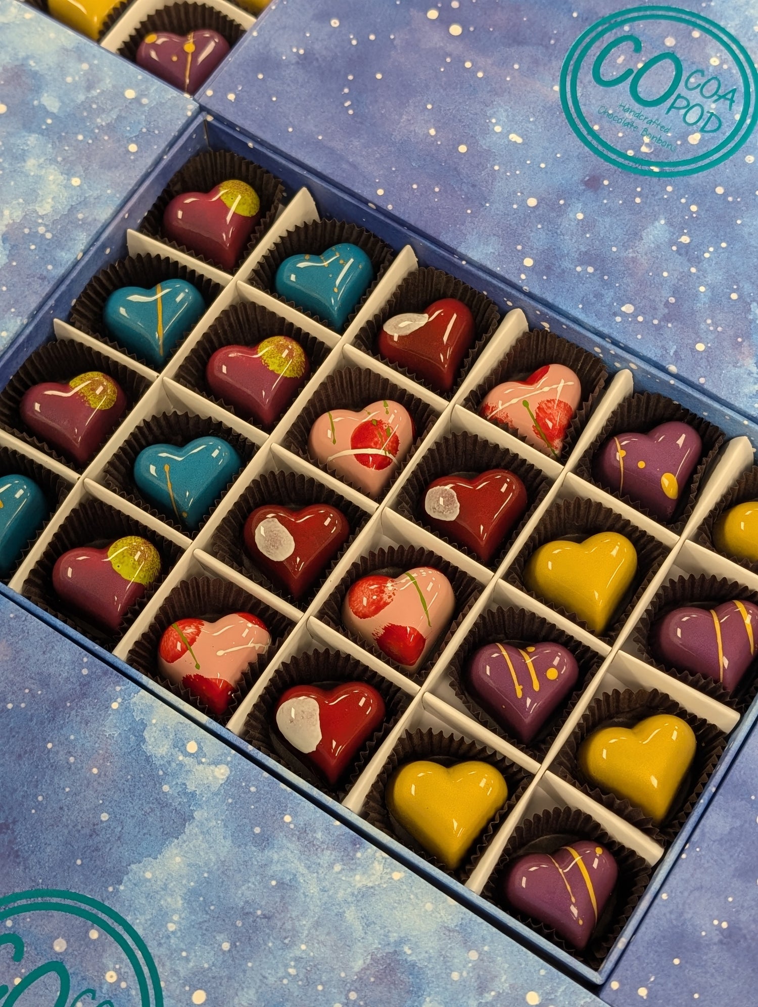 Come grab your last minute Valentine's Day chocolates at Colorado Cocoa Pod's Kitchen 🍫! We'll be open all day so you can stop by to build-your-own-box for yourself, your valentine, and/or galentine in the morning, or during lunch!