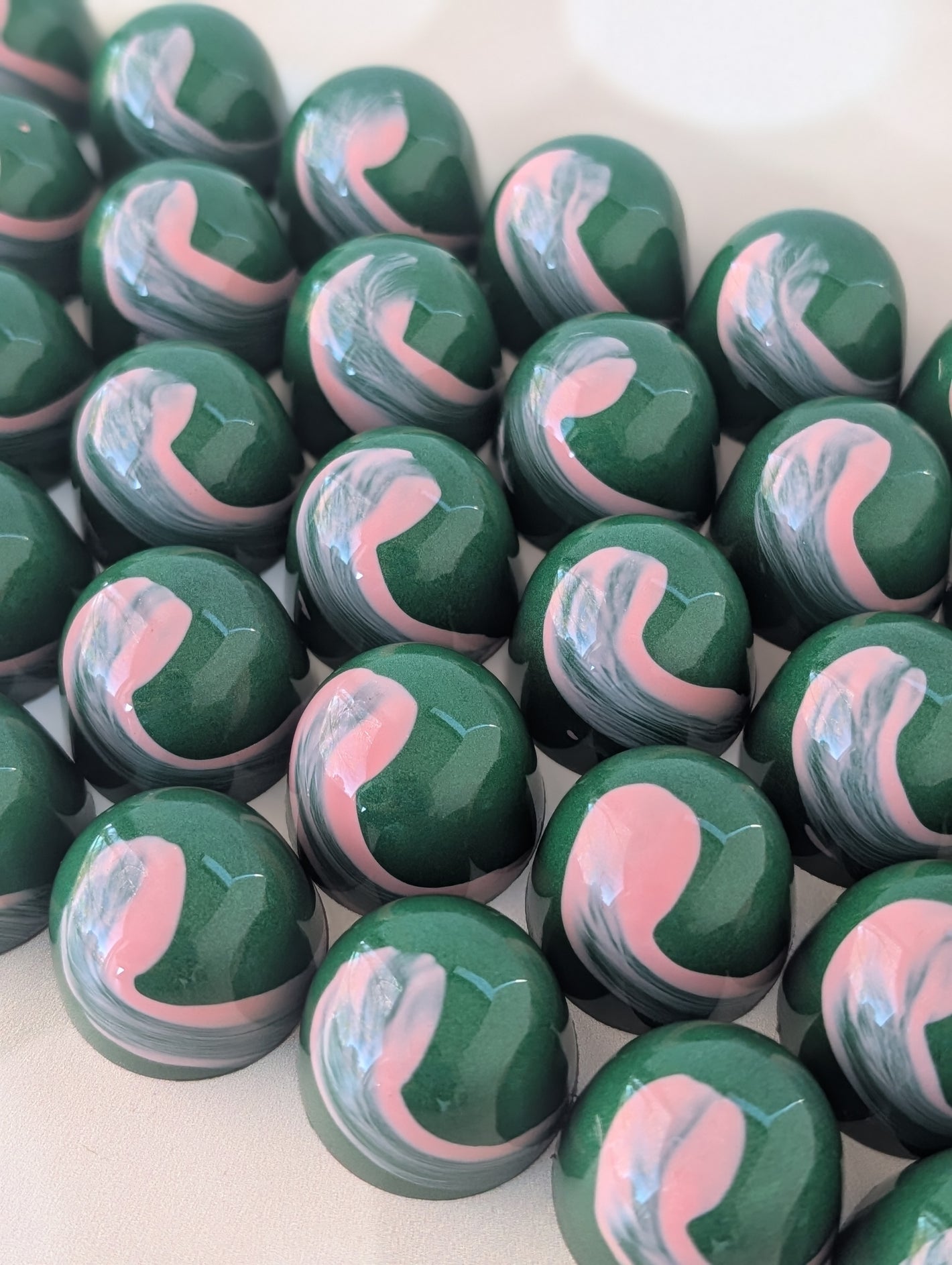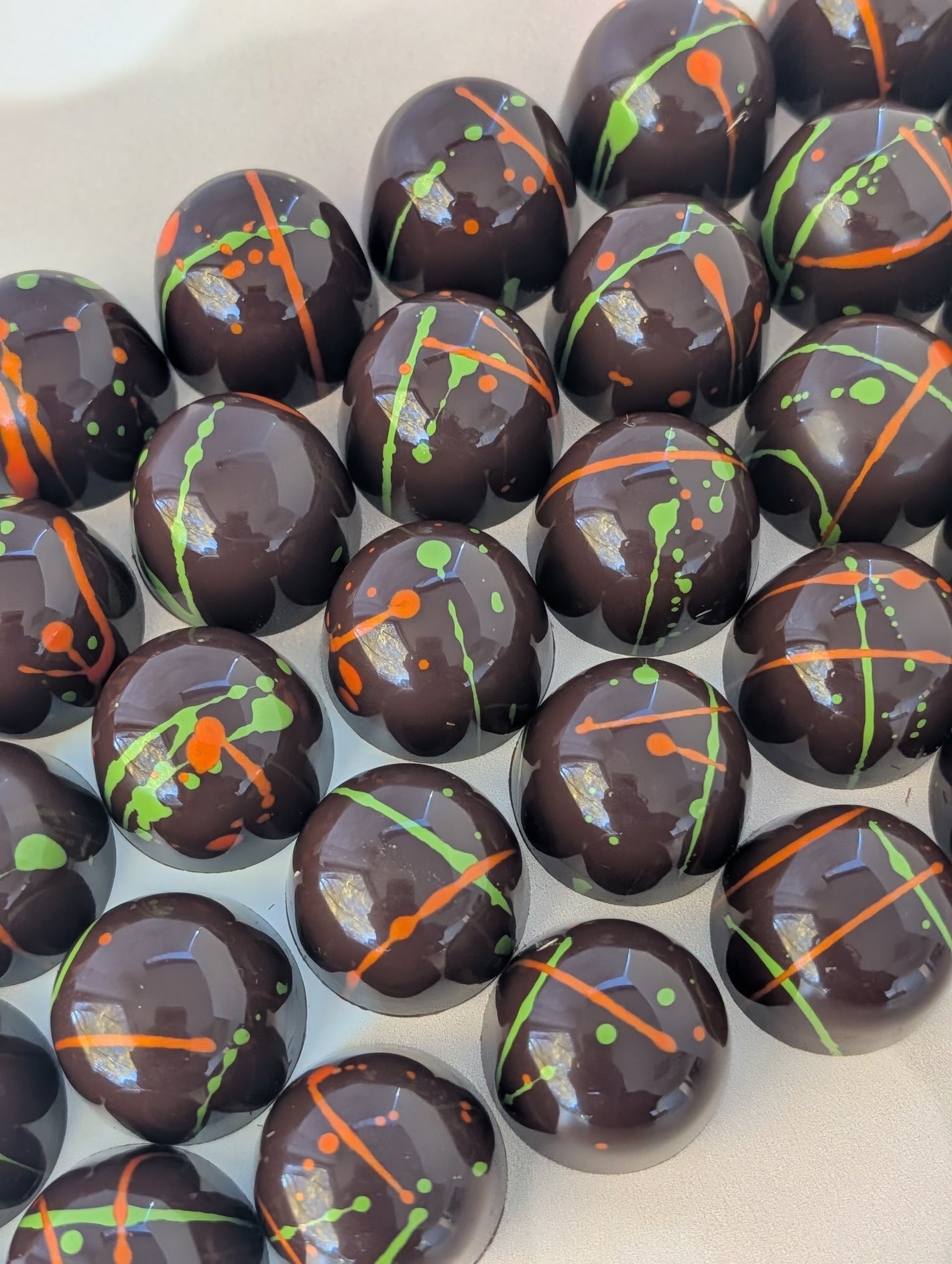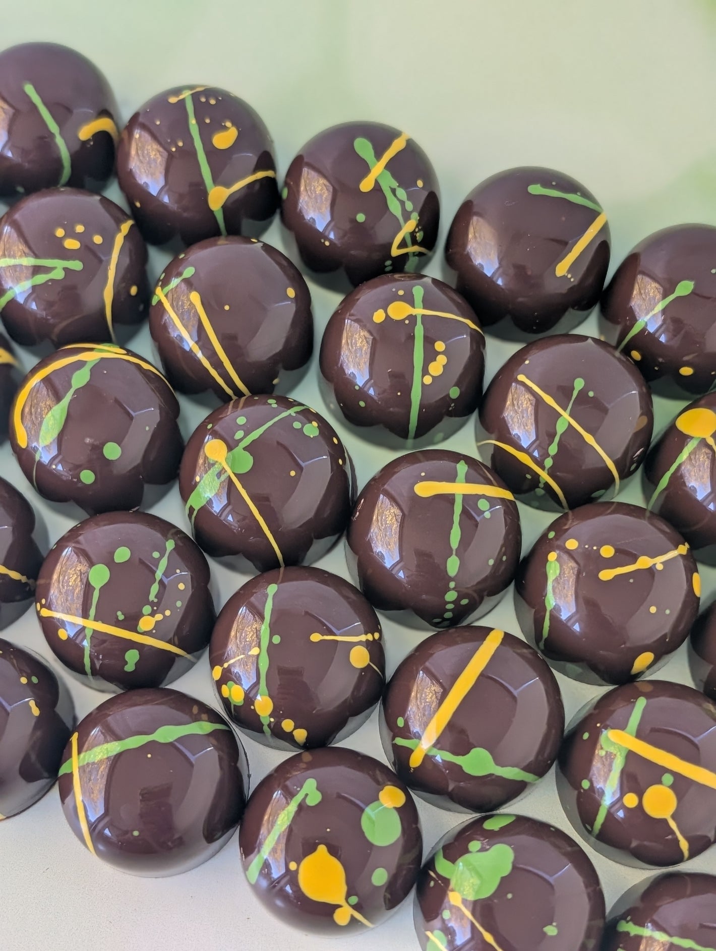 - When you are ready to consume or give them away, bring the chocolate bonbon box to room temperature by placing the entire box & bag in a cooler before opening to maximize the shine.